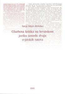 Hrvatsko muzikološko društvo > Studije > Glazbena kritika na hrvatskom jeziku između dvaju svjetskih ratova