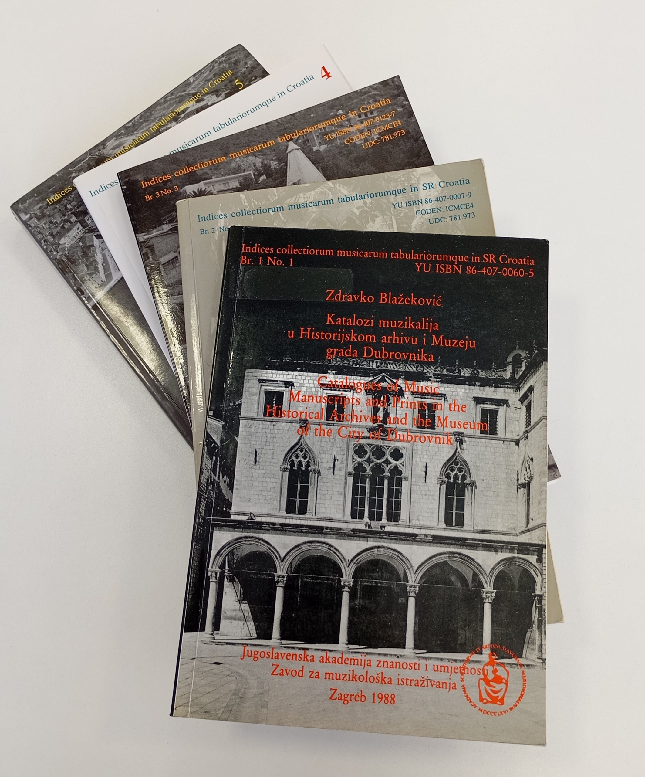 Serija ‘Indices collectiorum musicarum tabulariorumque in Croatia’ donosi kataloge hrvatskih glazbenih zbirki kao rezultate sređivalačkih i popisivačkih projekata u pojedinim značajnim zbirkama muzikalija u Hrvatskoj, a koji mogu poslužiti kao osnova za daljnja istraživanja glazbene građe i širih glazbeno-kulturnih poveznica. U novije vrijeme katalozi se objavljuju u elektroničkoj verziji.